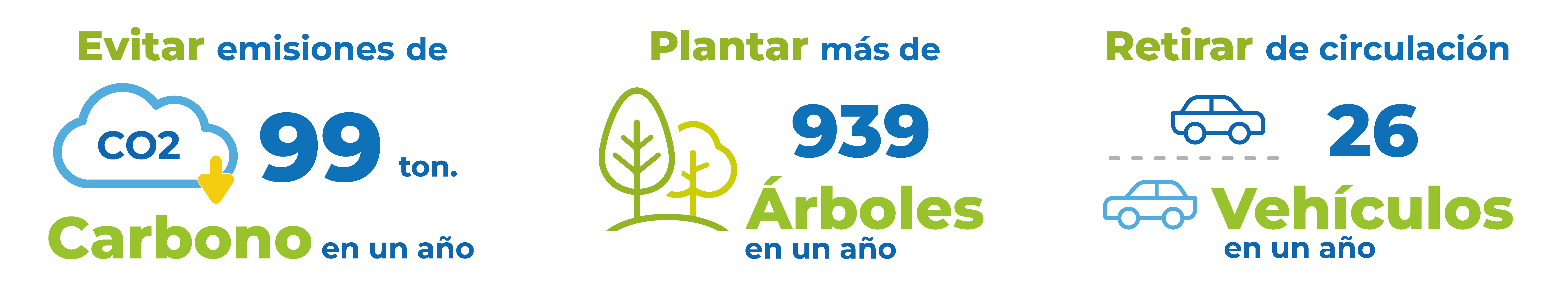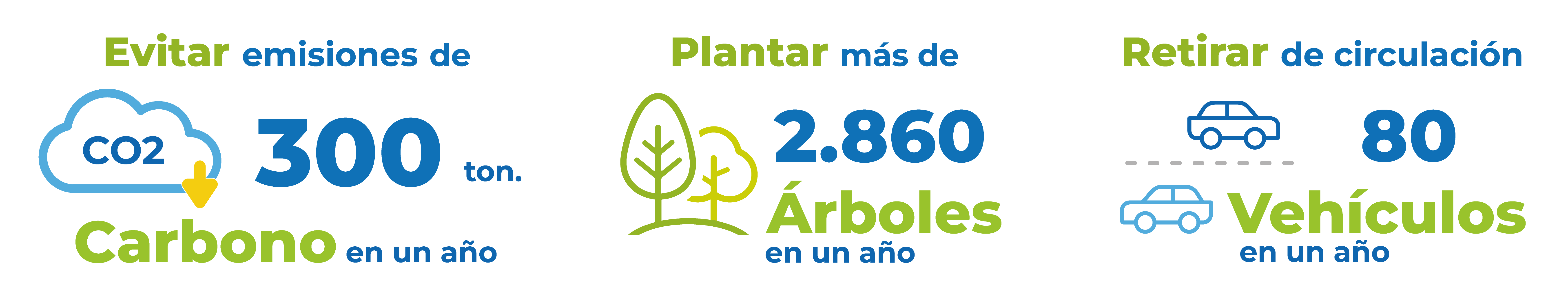 abastecimiento de energía 100% renovable, además, este suministro nos permite reducir las emisiones de Gases de
